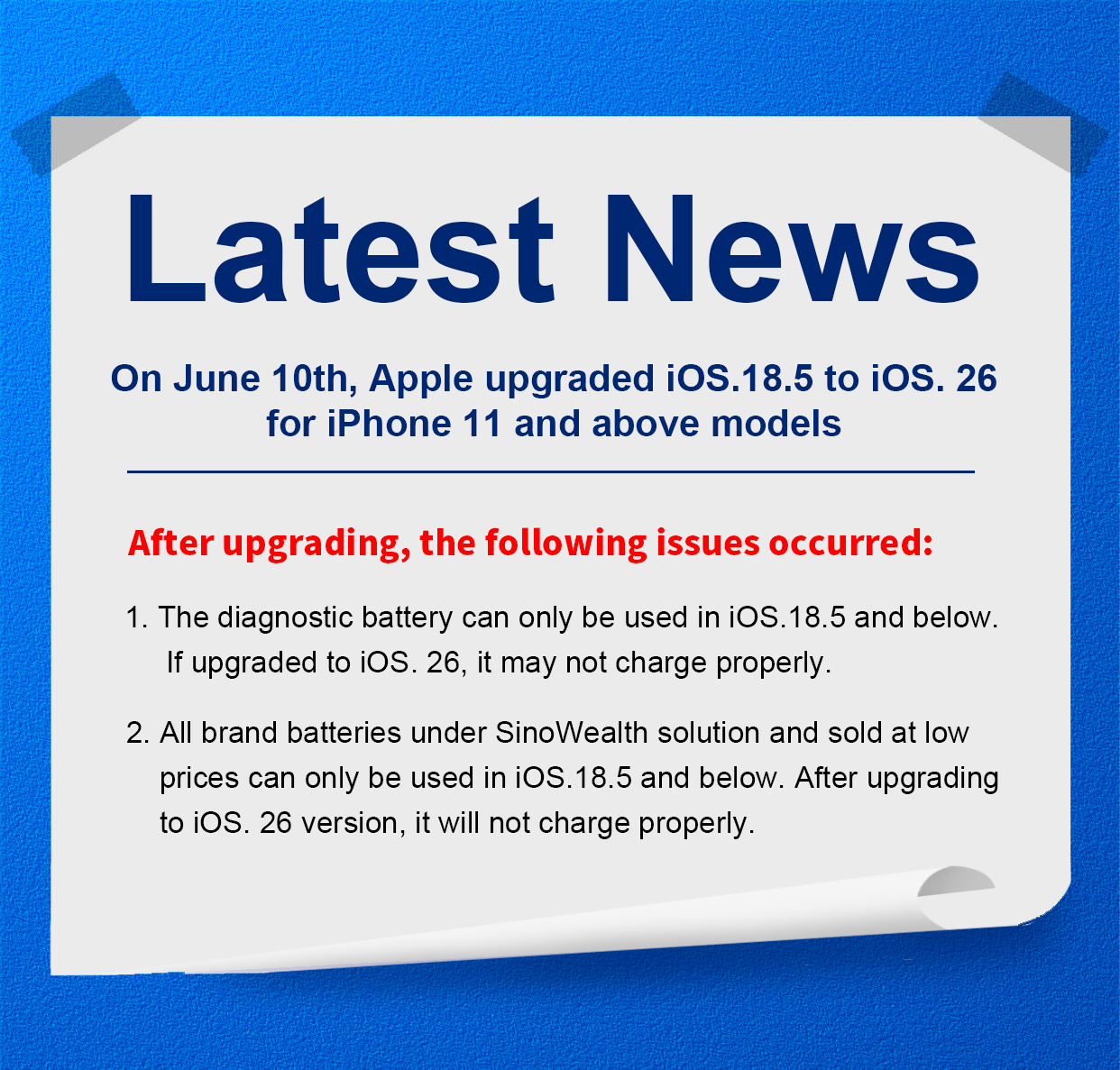 On June 10th, iPhone 11 and above models were upgraded to iOS. 26. After this upgrade, many users found that the battery did not charge when running diagnostics. This is not an isolated case, as many diagnosable batteries on the market are affected.