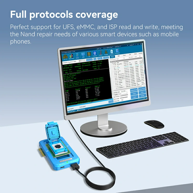 • Full protocols support: Perfectly compatible with UFS, eMMC, and ISP read/write