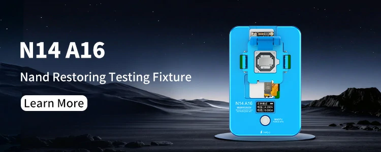 The Nand Restoring Testing Fixture collection includes N6/N7/N8/NX/N11/N12/N13/N14 flashing & testing stands that provide the ultimate solution for flashing and quality testing of iPhone 6-13 series motherboard and nand. The lightning data cable power supply ensures quickly enter into DFU mode without hassle thanks to its one key function – no batteries required which ensures stable flashing! Its ultra portable and extreme industrial design tool is perfect for any technician searching for efficiency in their workflows.